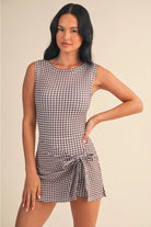 Meet your new go-to for active days: the Harper Wrap Athletic Dress in gingham print. This sleeveless design offers a sleek and sporty silhouette with just the right amount of statement. The stylish wrap tie front not only adds a fashionable detail but also allows you to adjust the fit to your liking. Inside, comfortable built-in shorts provide confident coverage for all your movements—whether you’re out for a brisk walk, running errands, or hitting the park for a workout. Made with moisture-wicking fabric, it keeps you cool and dry through it all. With its playful print and functional design, this dress easily transitions from fitness to casual days out.