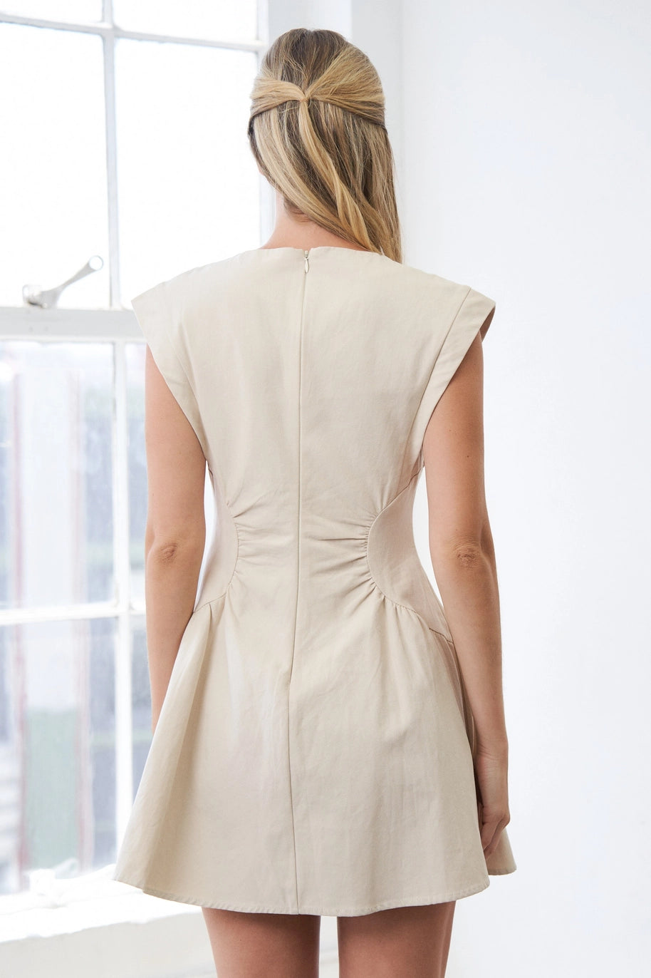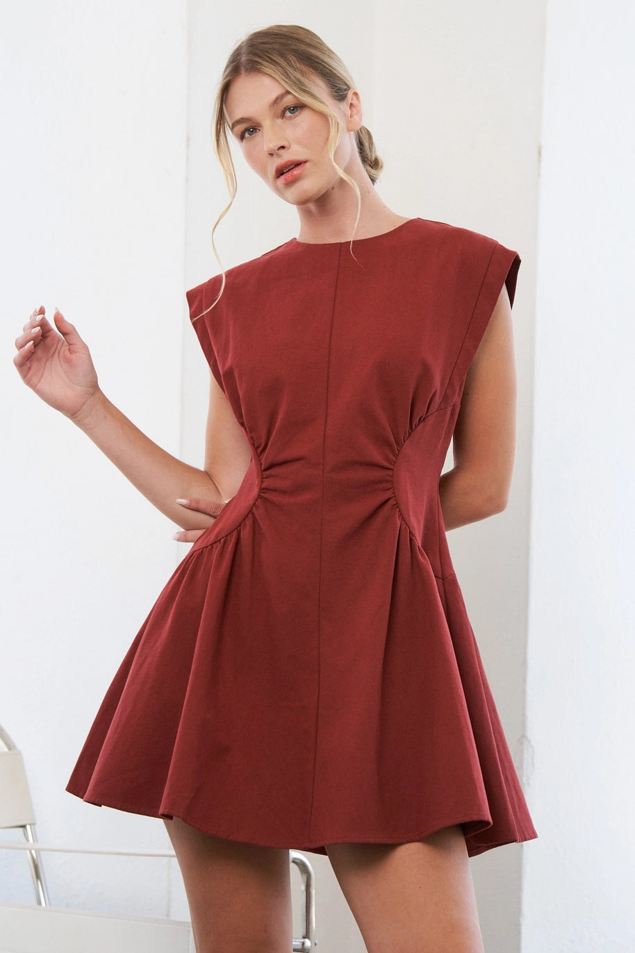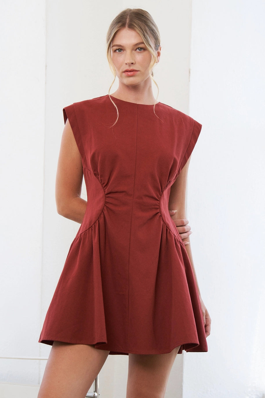Sleek, structured, and effortlessly chic — The Modern Muse Mini Dress is the ultimate wear-anywhere piece. Crafted from 100% cotton, this sleeveless mini features extended shoulders, a fitted bodice with gathered side panels, and a flattering A-line skirt that moves with ease. The crew neckline and back zipper closure keep the look polished, while the soft cotton fabric ensures all-day comfort.
