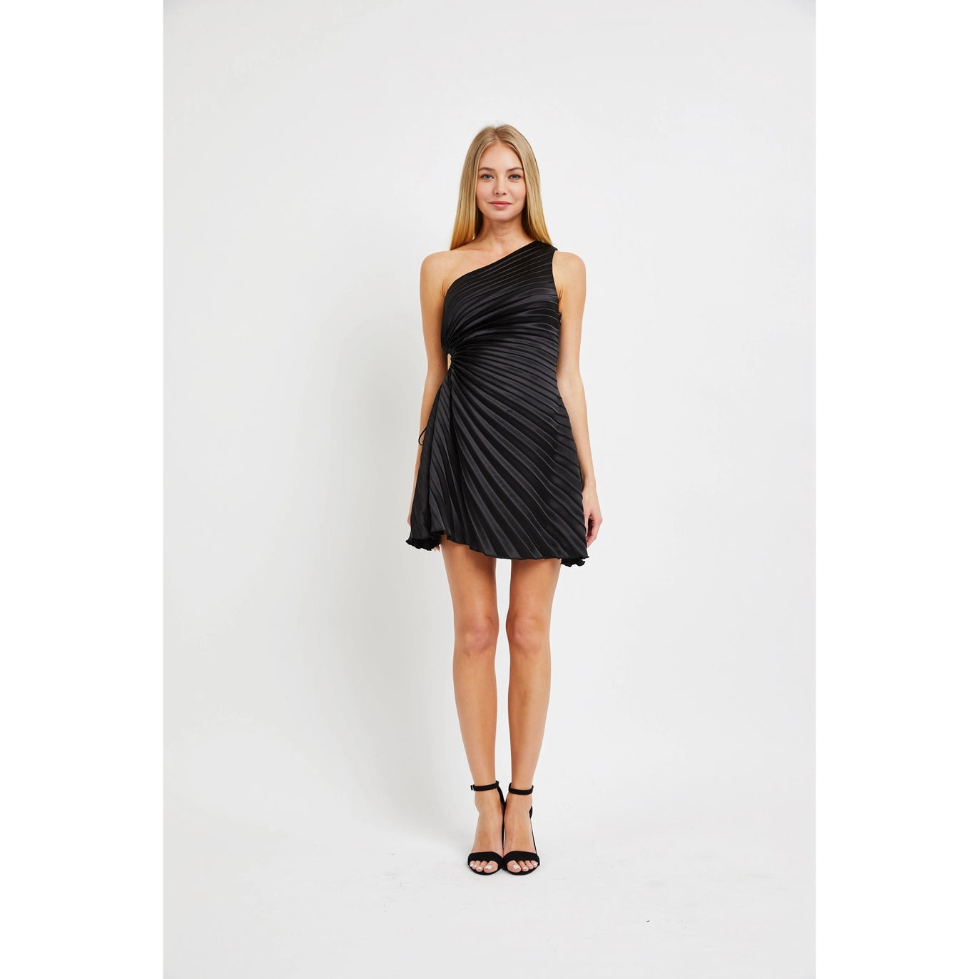 Own the night in the Roxie One-Shoulder Mini Dress, a head-turning piece made for flirty and unforgettable moments. With its sleek pleated fabric, bold one-shoulder neckline, and playful waist cutout cinched with a drawstring, this mini delivers the perfect mix of sass and sophistication. The swingy hemline keeps it fun and flirty, while the curve-enhancing silhouette guarantees all eyes on you. Pair it with heels and a bold lip for the ultimate night-out look.