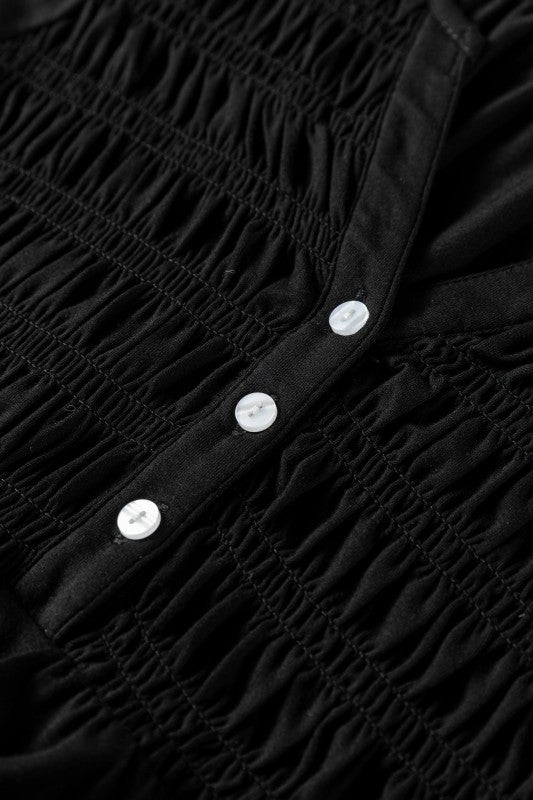 Aliana Bust Flow Fit Blouse is made for real life—easy to wear, easy to love. Stay comfortable all day in this split V-neck blouse. Elevate your style with a smocked bust design. Versatile piece with long sleeves and a flow fit for any occasion. Style with pants, jeans, shorts, or a skirt for a complete outfit. Material: 93%Viscose+7%Elastane.