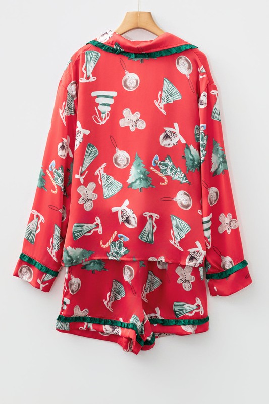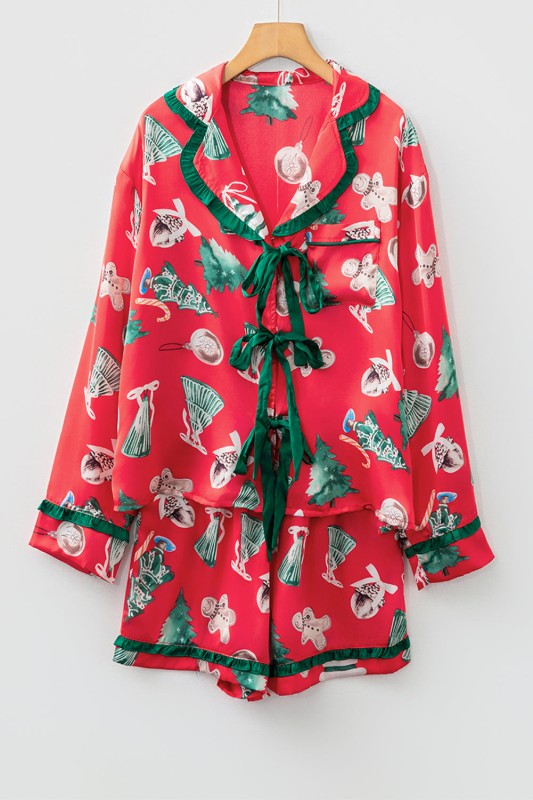 Christmas Bow Ruffle Trim Top and Shorts Pajama Se