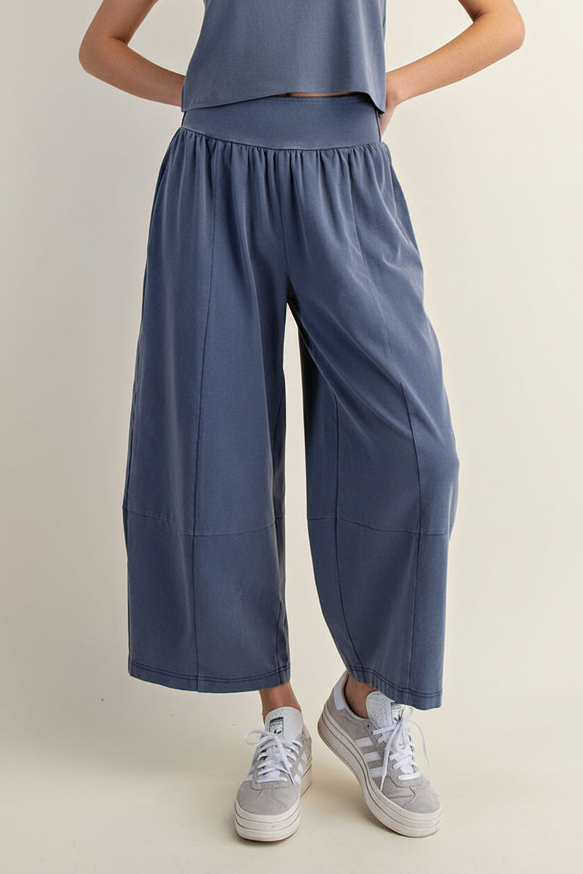 Effortlessly cool and endlessly comfortable—these mineral washed wide leg pants are your new go-to for laid-back style. The unique mineral wash finish gives each pair a soft, lived-in feel with subtle color variations that make every piece one-of-a-kind. Featuring a wide smocked waistband that flatters and moves with you, exaggerated gathered pleating for added dimension, and a relaxed wide leg silhouette that flows beautifully with every step.