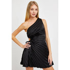 Own the night in the Roxie One-Shoulder Mini Dress, a head-turning piece made for flirty and unforgettable moments. With its sleek pleated fabric, bold one-shoulder neckline, and playful waist cutout cinched with a drawstring, this mini delivers the perfect mix of sass and sophistication. The swingy hemline keeps it fun and flirty, while the curve-enhancing silhouette guarantees all eyes on you. Pair it with heels and a bold lip for the ultimate night-out look.